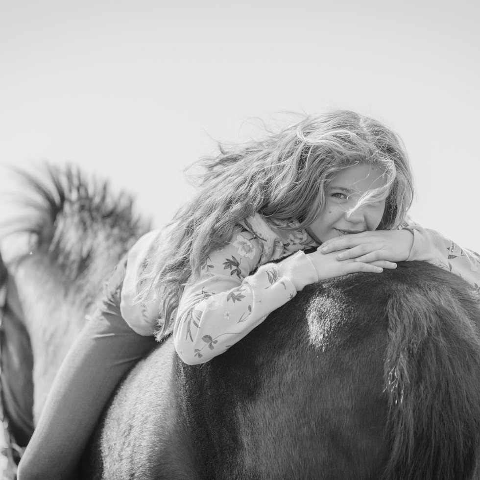 Lynne van Venrooij had begin dit jaar een fotoshoot paard & ruiter gewonnen van de Facebook en Instagram actie en toen ik aan het begin van de shoot vroeg of ze zelf nog iets speciaals in gedacht had kon ik mijn plezier niet op dat ze graag achterste voren liggend op haar pony wilde poseren. Mijn Bucket-list shot! Dat werd dus dolle pret, met super leuk resultaat!